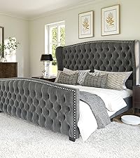- Grand and glamorous, our queen bed frame features elegant tall wingback headboard & deep diamond tufted footboard, stealing spotlight in your bedroom decor.